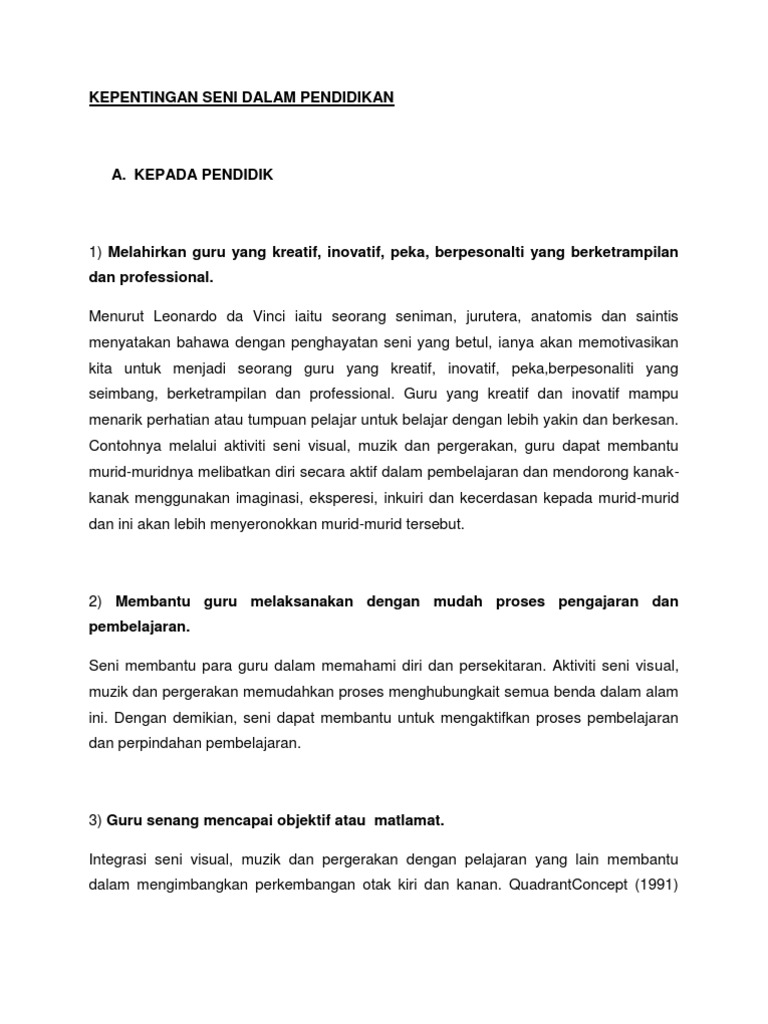 Kepentingan Seni Dalam Pendidikan Pdf